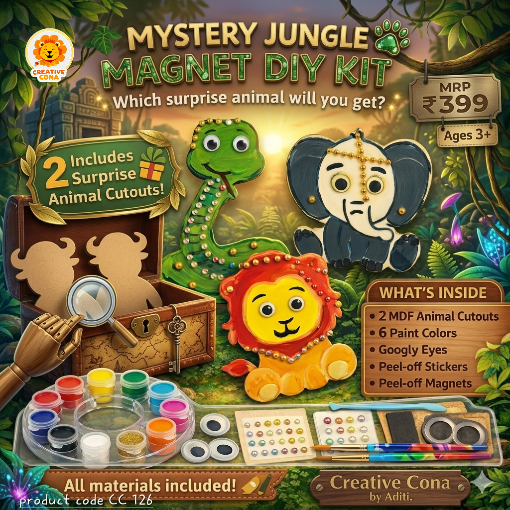We understand that your little one's safety is your top priority, which is why our Mystery Jungle Magnet DIY Kit is crafted using only premium, non-toxic, and child-safe materials. Each kit undergoes rigorous quality testing to meet strict Indian safety standards, ensuring the paints and wooden cutouts are completely harmless for tiny hands. You can enjoy total peace of mind while your child dives into hours of safe, screen-free creativity!