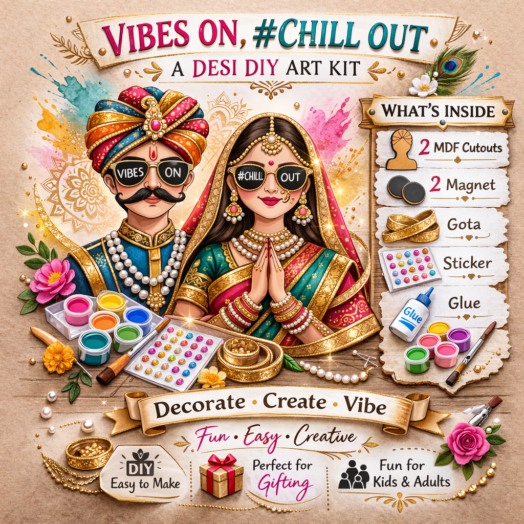 Step 6: Share the Vibes - Use the remaining pieces for a relaxing me-time session, host a fun craft day with family, or package your finished desi magnets as unique, handmade gifts for festivals and birthdays.