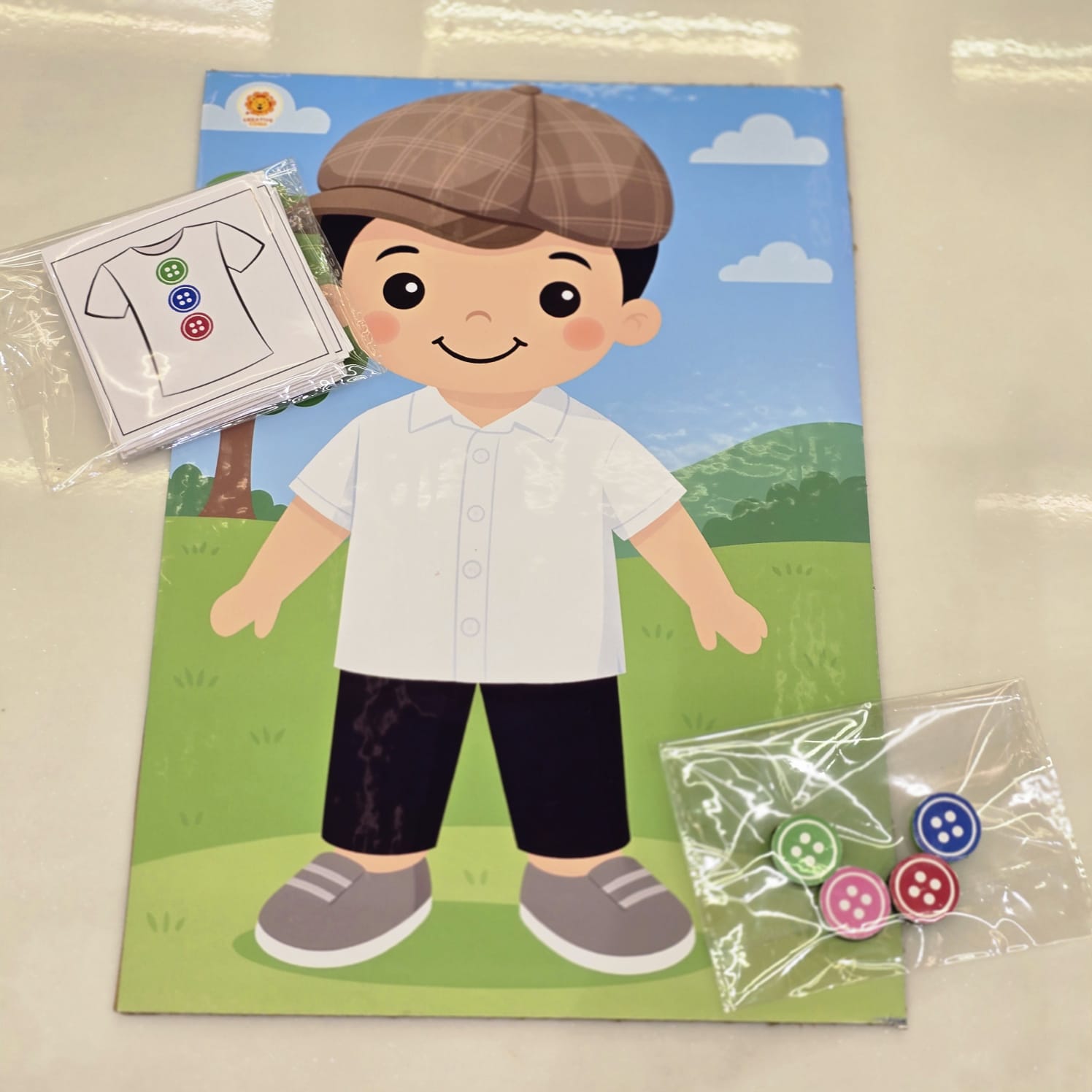 šāØ Make learning colors, patterns, and sequencing FUN with Button Up My Park Buddy ā a magnetic matching game designed to grow with your child through 3 levels of challenge! šÆ Product Highlights: š§ Sturdy magnetic Classroom -themed board with cute character š§² 4 magnetic buttons (red, blue, green, pink) š 20ā24 reusable pattern cards in 3 progressive levels: Level 1: 2-button patterns Level 2: 3-button patterns Level 3: 4-button complex patterns š§ Based on Montessori hands-on learning principles š Compact, travel-friendly, and mess-free š” Builds: Color recognition Logical sequencing & matching Visual perception Fine motor skills & grip strength š Perfect For: Preschool & early learning setups Return gifts, birthday gifts, and travel activities